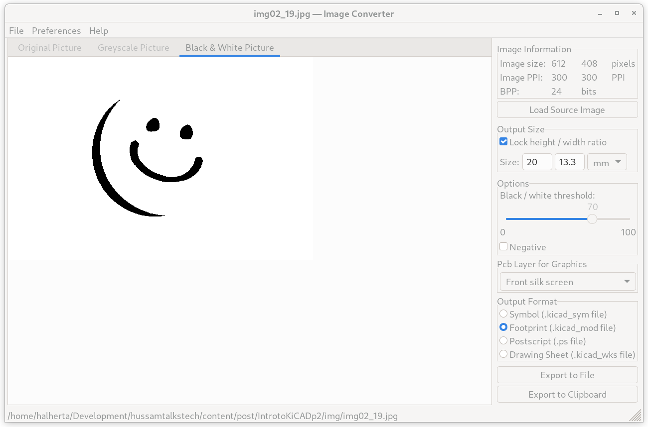 - Press the Export button and save the file as smiley.kicad_mod in the logos.pretty folder (Figure 21).